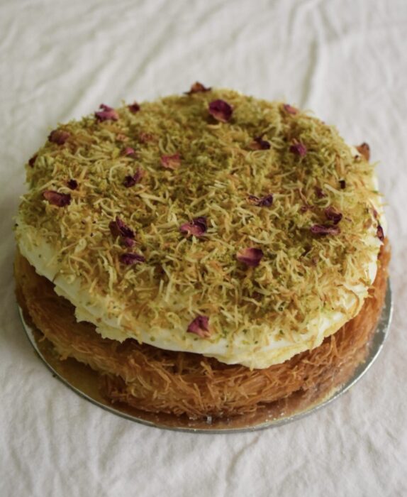 Sweet and crunchy kanafeh pastry, sandwiches rich and creamy keshta-topped cheesecake.