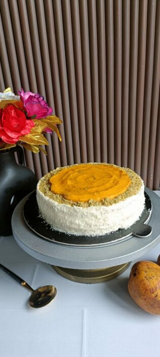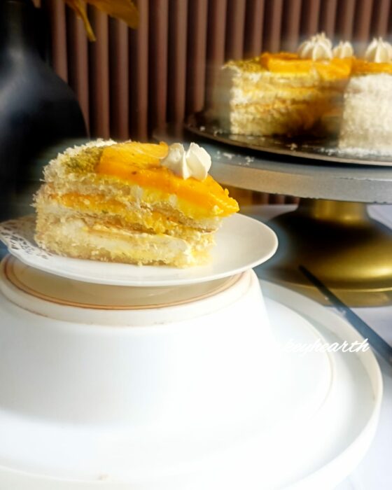 Indulge in the tropical delight of our Coconut Mango Cake โ a perfect blend of creamy coconut and juicy mango! ๐ด๐ฅญ Satisfy your sweet cravings with every bite!
