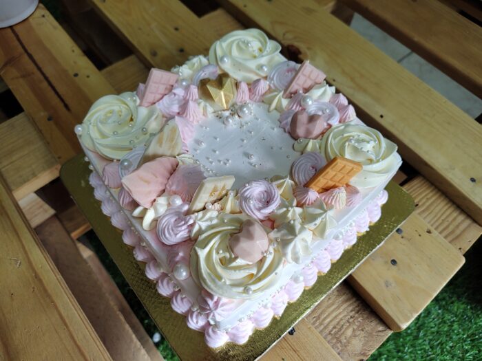 Fresh baked on order with premium ingredients. All items used in the cake are made of edible material.