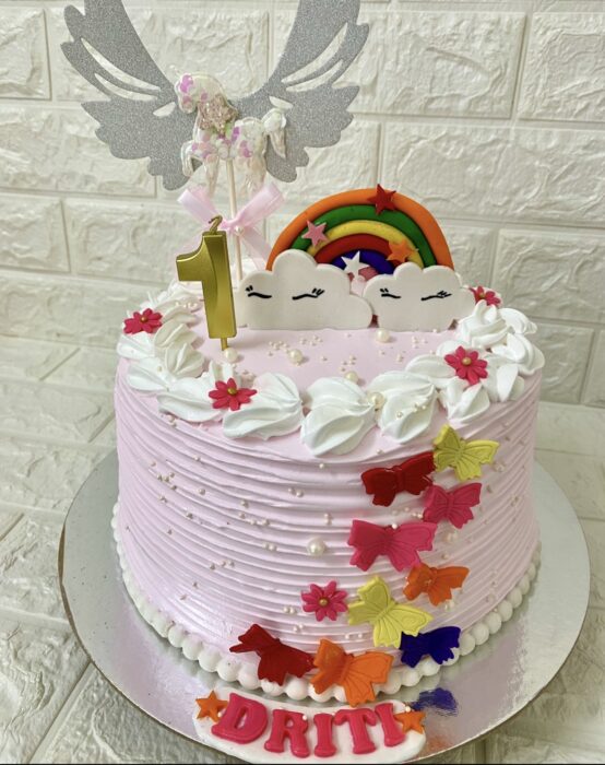 Eggless vanilla cake layered with strawberry compote n custom design.