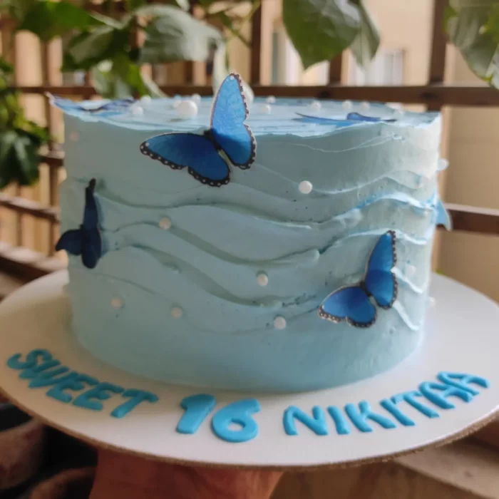 This beautiful cake adorned with edible butterflies, and completed with vanilla buttercream isna winner for your special occasion