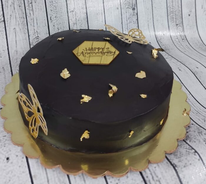 This Belgium Couverture Chocolate cake is a delight for the chocoholic in you – a light moist layered chocolate truffle cake filled and frosted with real Belgian chocolate ganache. Customization is available.