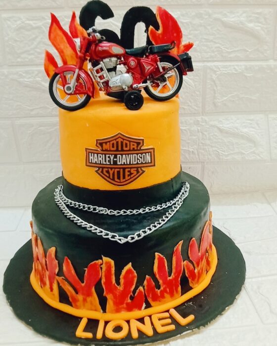 This is butter based sponge cake. Chocolate ganache frosting and fully fondant covering cake. extra fondant decoration and bullet toy
