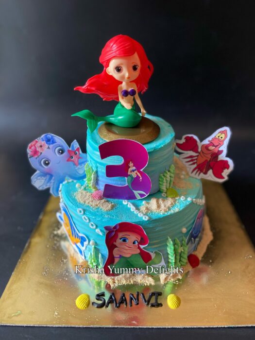 Available in different flavours customisation available decorated with paper toppers and amermaid doll on top to enhance the look of the cake