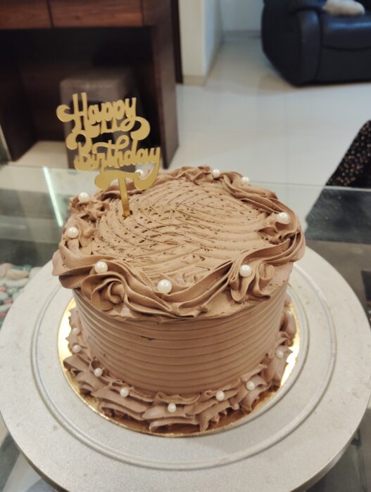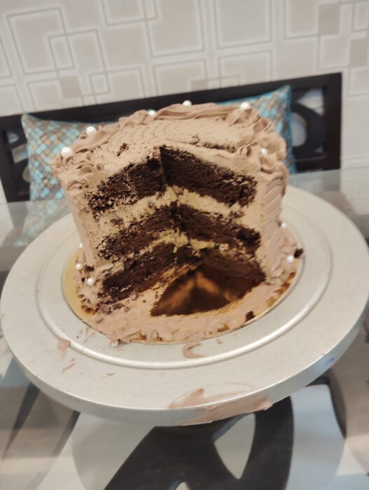 Chocolate Mousse cake with 3 layers. It has a combed design and an amazing taste of chocolate mousse