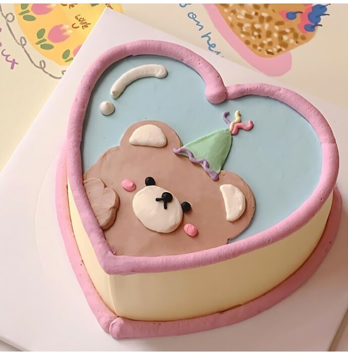 Make your child’s day extra special with our Adorable Teddy Bear Heart Cake! This charming cake is crafted in the shape of a heart and features a cute teddy bear design wearing a festive party hat. Perfect for birthdays or any celebration, this cake not only melts hearts with its appearance but also delights taste buds with its delicious flavors. The pastel colors and sweet details make it a beautiful centerpiece that will leave a lasting impression on everyone!